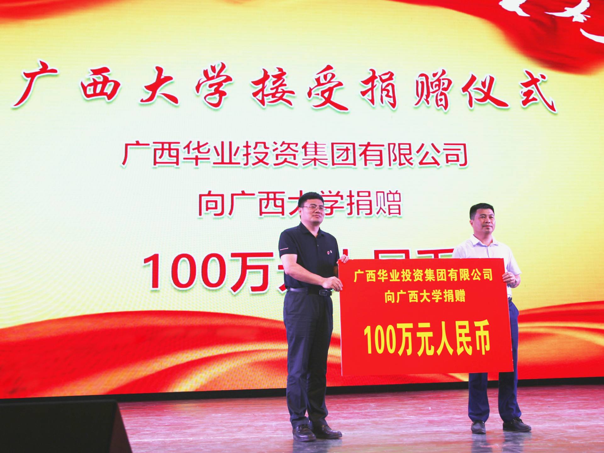 龍其生董事長代表華業(yè)集團(tuán)向廣西大學(xué)捐贈100萬元
