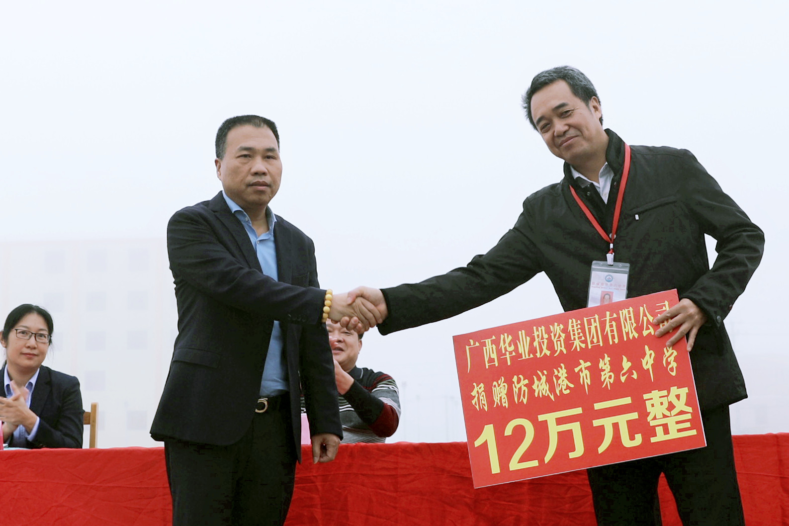 龍其偉總裁代表華業(yè)集團(tuán)向防城港市六中捐贈華業(yè)獎教學(xué)金12萬元