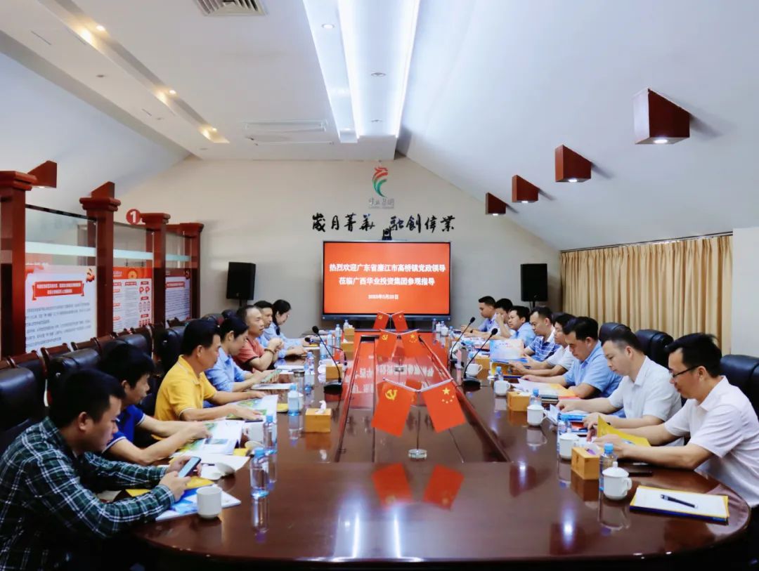 2023年3月23日,廣東省湛江市廉江市高橋鎮(zhèn)黨委書記劉付劍輝、鎮(zhèn)長葉福柱等領(lǐng)導(dǎo)一行十五人蒞臨廣西華業(yè)投資集團有限公司考察調(diào)研,廣西華業(yè)投資集團有限公司創(chuàng)始人、總裁龍其偉,工會主席鐘麗霞熱情地接待了家鄉(xiāng)領(lǐng)導(dǎo),對家鄉(xiāng)領(lǐng)導(dǎo)們的到來表示熱烈歡迎!