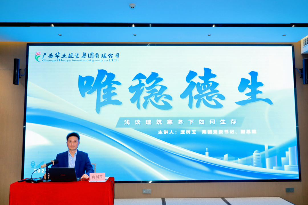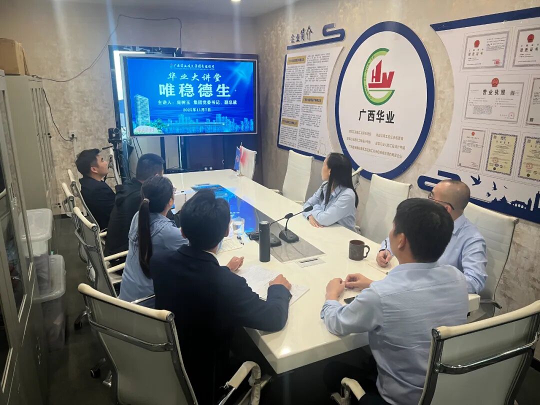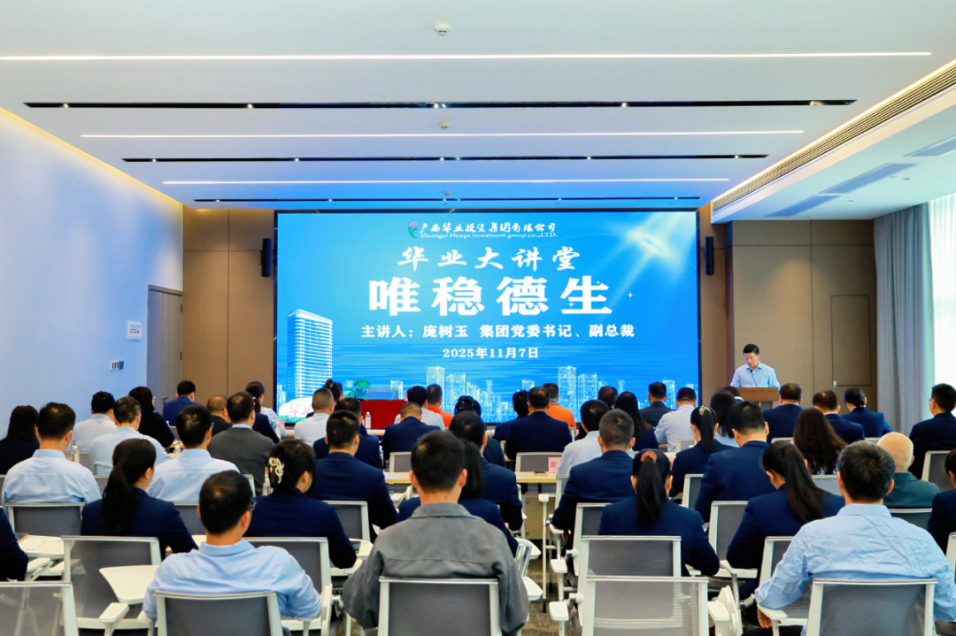 2025年11月7日,華業(yè)集團2025年第五期“華業(yè)大講堂”培訓(xùn)在華業(yè)大廈24樓會議室圓滿舉行。集團黨委書記、副總裁龐樹玉以《維穩(wěn)德生》為題作專題分享,旨在引導(dǎo)全體員工在建筑行業(yè)“寒冬”中統(tǒng)一思想、找準(zhǔn)路徑、穩(wěn)健前行。集團董事長龍其生、總裁龍其偉、副總裁廖人興、熊昭斐等領(lǐng)導(dǎo)及各子公司中高層管理人員、員工代表共計105人參加。本次培訓(xùn)設(shè)集團主會場以及北部灣、粵港澳、盛萬事、華業(yè)龍輝等多個視頻分會場,活動由集團黨委副書記王孟軍主持。
