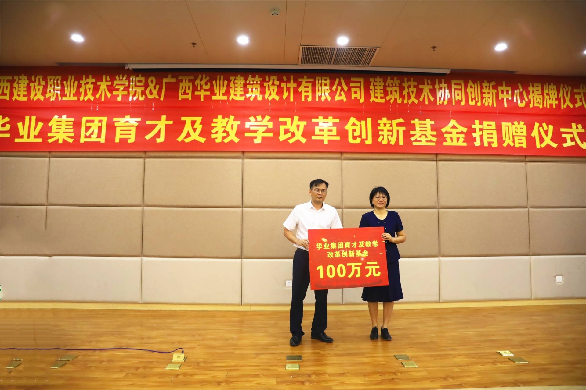 廖人興副總裁代表華業(yè)集團(tuán)向廣西建設(shè)職業(yè)技術(shù)學(xué)院捐贈100萬元