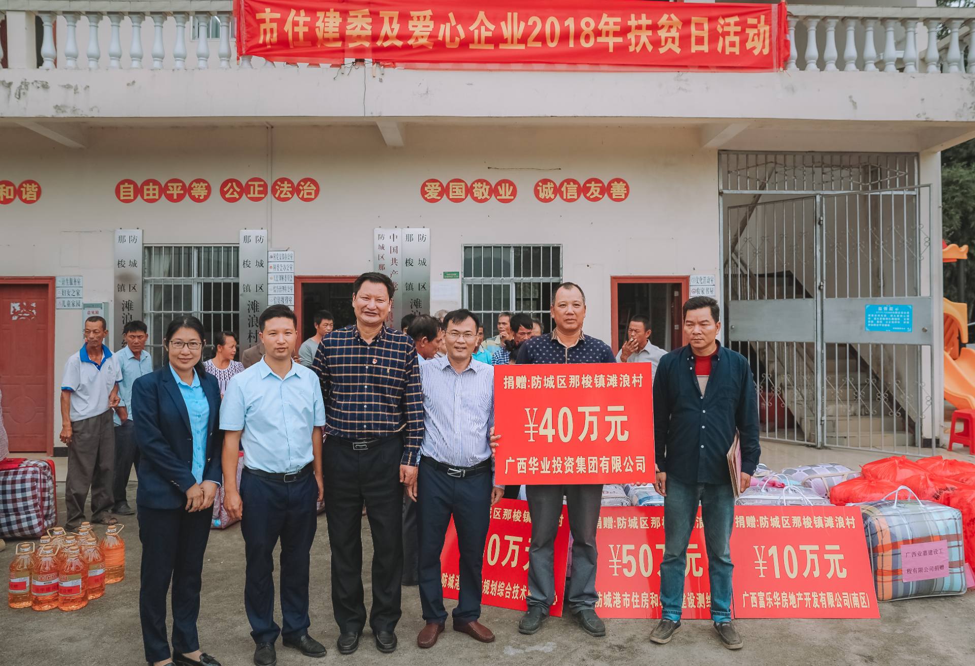 廖人興副總裁、鐘麗霞主席代表華業(yè)集團(tuán)捐贈40萬元用于建設(shè)灘浪村扶貧項目