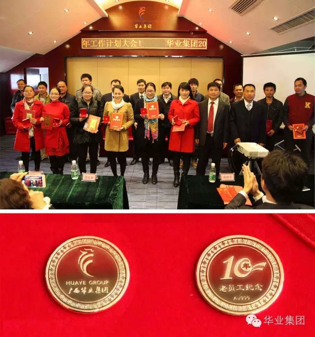 公司領(lǐng)導(dǎo)為十年員工頒發(fā)榮譽(yù)證書及紀(jì)念金幣